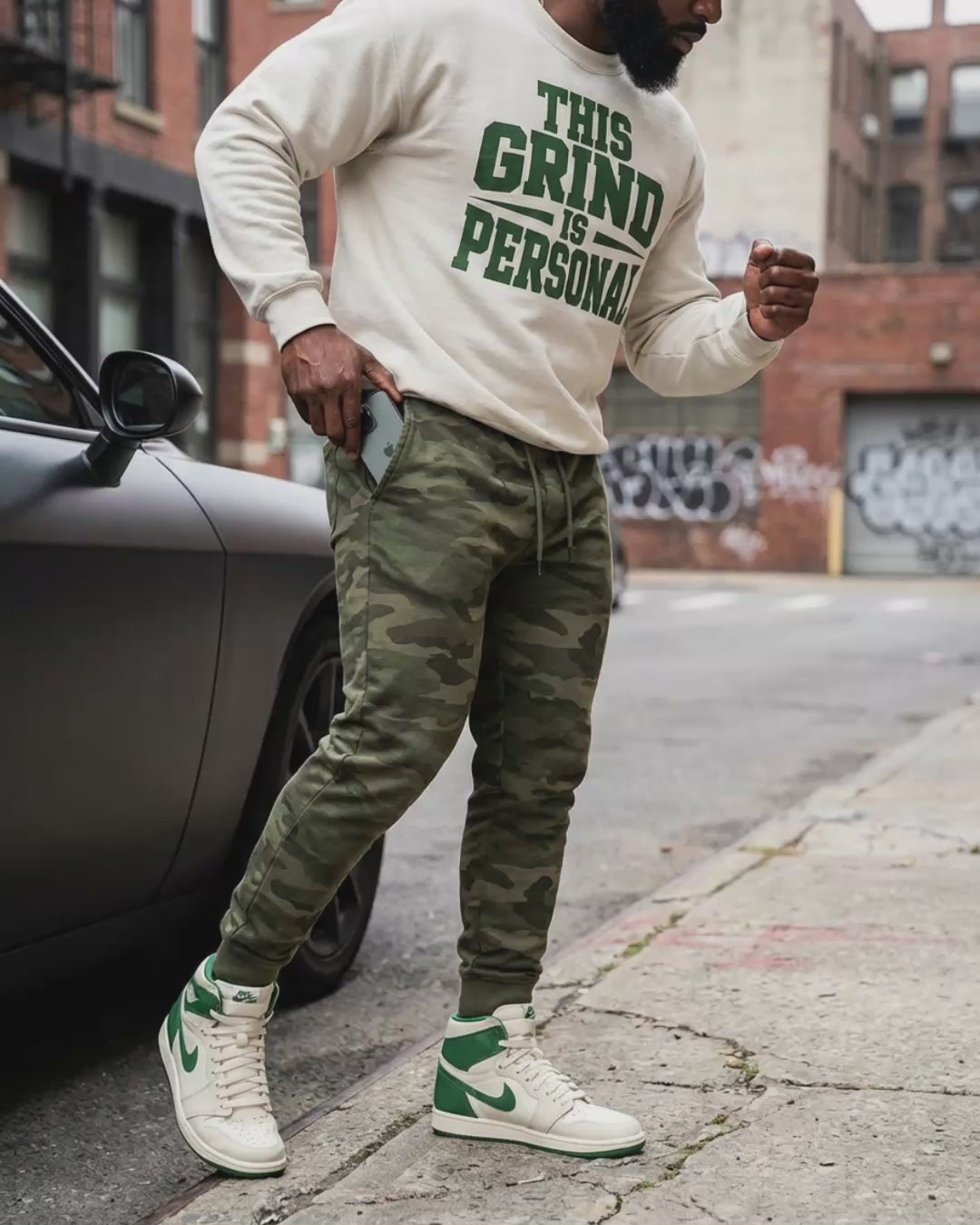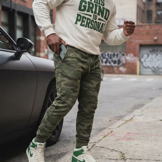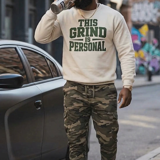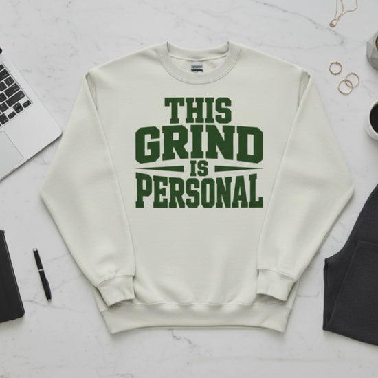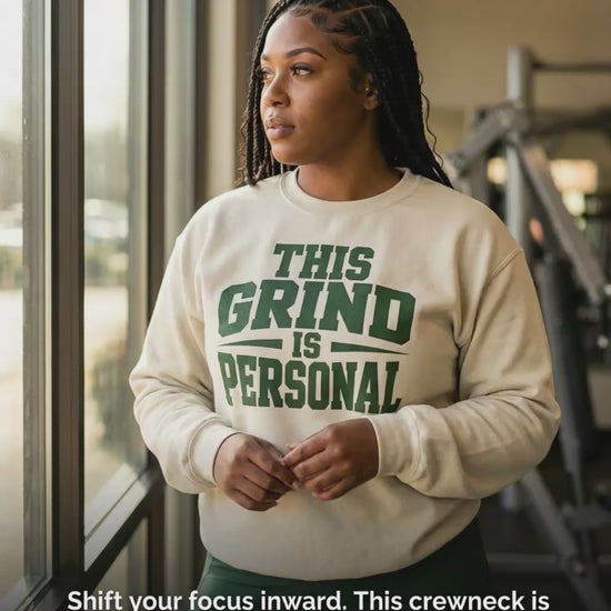 Rocking the new 'THIS GRIND IS PERSONAL' crew in Sand/Forest Green. It’s giving varsity captain of a team of one. 💚✨